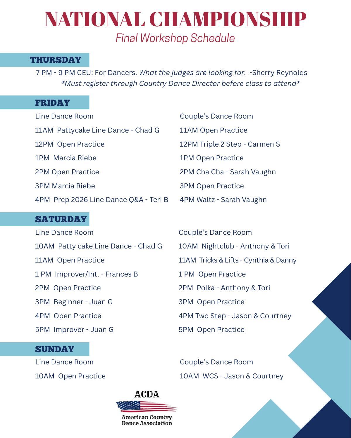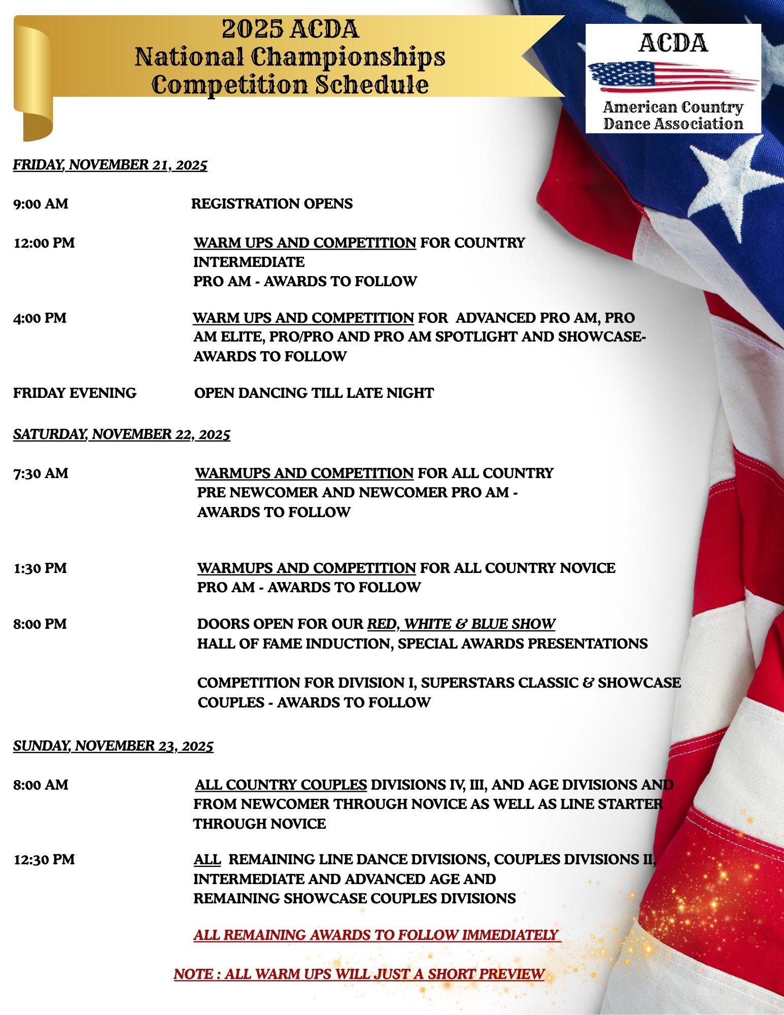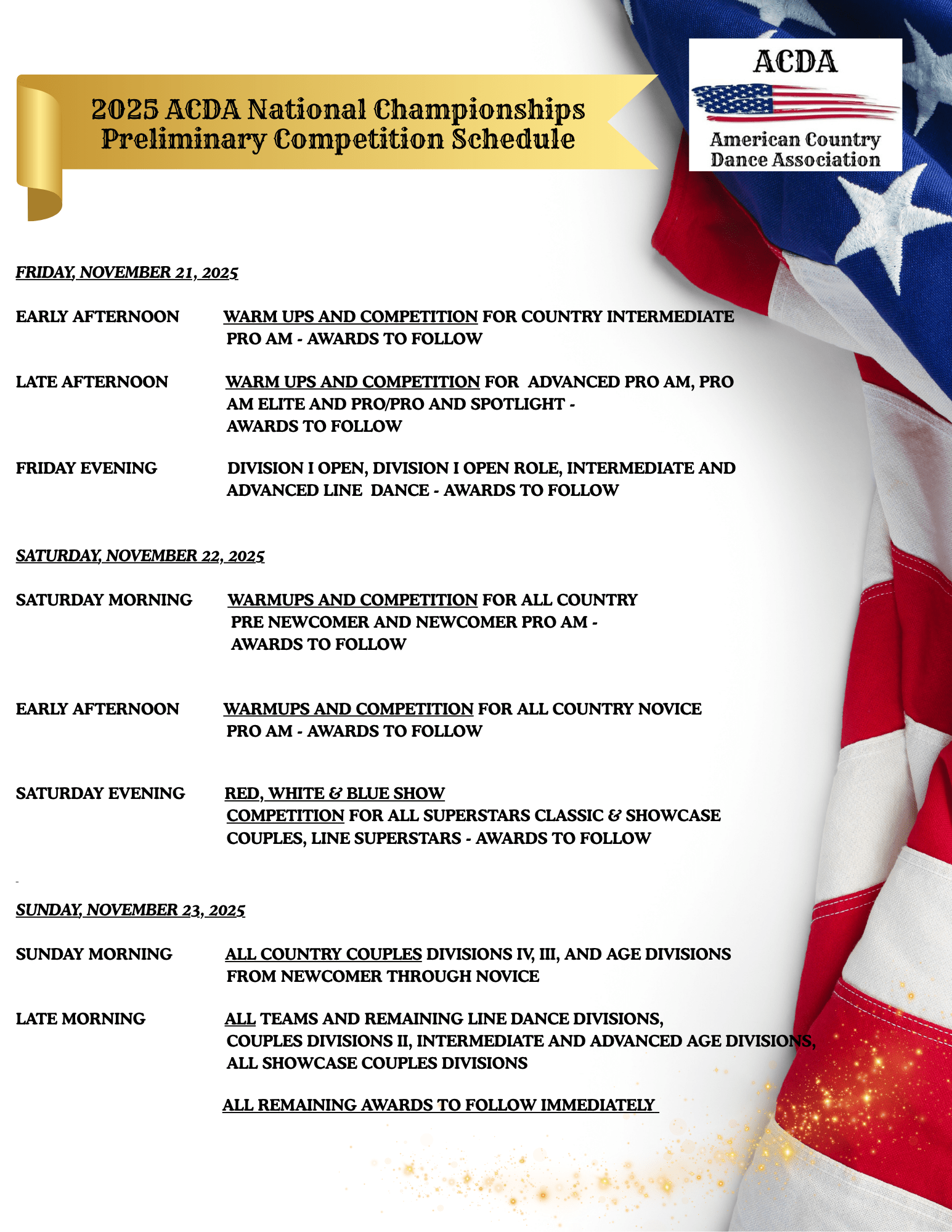 - Compete at two ACDA-sanctioned events during a dance season in each division you want to qualify